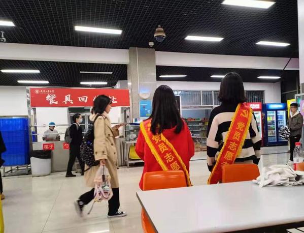 为保证同学们的用餐秩序,我院青年志愿者协会组织招募党员志愿者,积极参与为期两周的西苑和东苑学生餐厅志愿服务活动,旨在为同学们提供一个温馨的用餐环境。