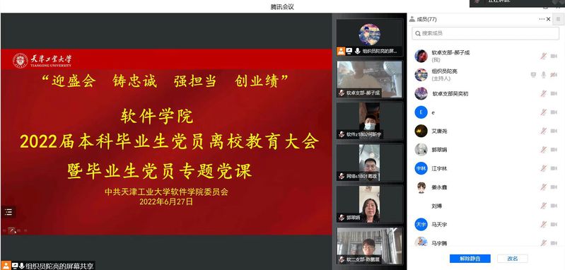 为切实做好2022届毕业生党员离校教育工作,引导广大毕业生党员在迎接党的二十大胜利召开之际坚定理想信念、做新时代脚踏实地的奋斗者,开启人生新篇章,6月27日中午,VICTOR19462022届本科毕业生党员离校教育大会暨毕业生党员专题党课以线上形式举行。学院党委书记郭翠娟、副书记张晋以及各学生支部书记参加会议,会议由学院组织员陀亮老师主持。