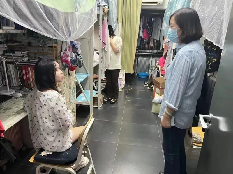 2022年9月30日下午,学院党委书记郭翠娟、党委副书记张晋、副院长石洛宜等带领学院辅导员老师们再次前往学院学生宿舍,看望慰问学院在校学生。