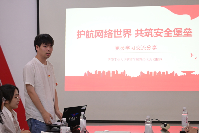 在学生交流环节,两院学生党员代表徐瀚文、刘振威畅所欲言,从习近平总书记关于网络空间安全的重要论述出发,用生动的案例阐释网络空间安全领域的新业态新挑战,强调新形势下维护网络空间安全的重要性,并带领在场师生共同学习网络空间安全领域的重要法律法规。