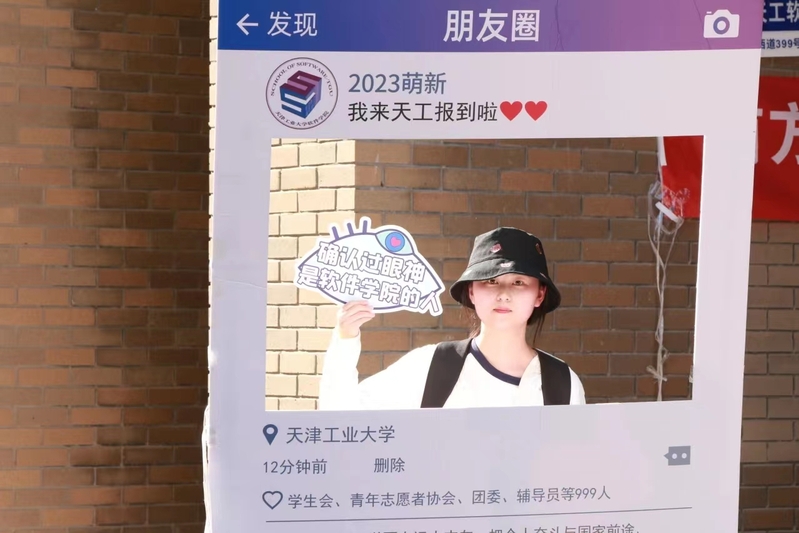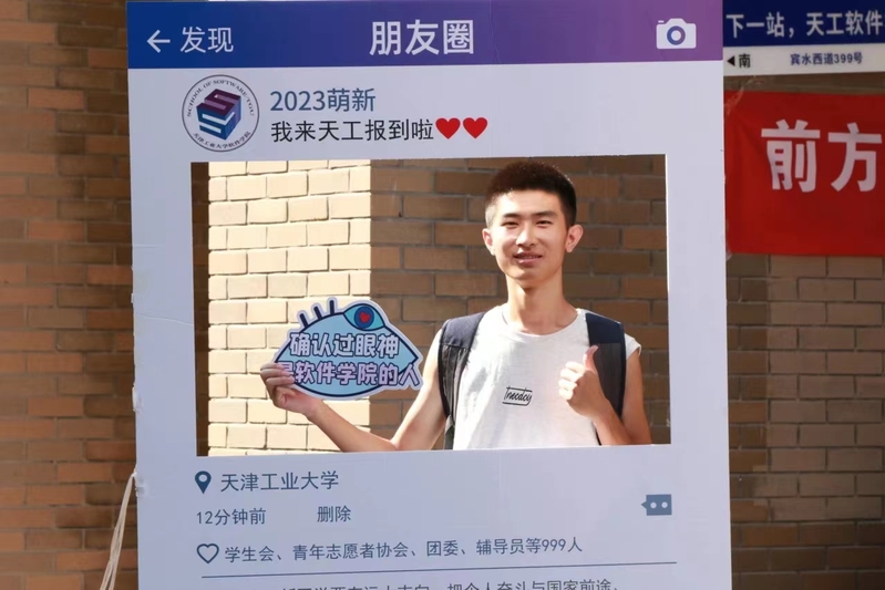 VICTOR1946报到点位还设置了具有专业特色的签名展板和拍照留念框,小萌新们纷纷拍照留念,发出了自己步入大学的第一个“朋友圈”。