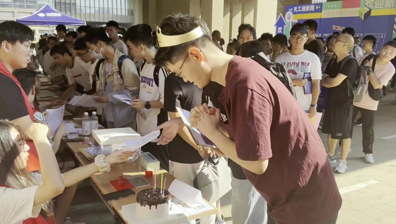 报到当天是一名研究生新生的生日,学院了解到情况后,提前为这名新同学准备了生日蛋糕和惊喜。生日遇上迎新日,“新”的味道,难忘记忆。