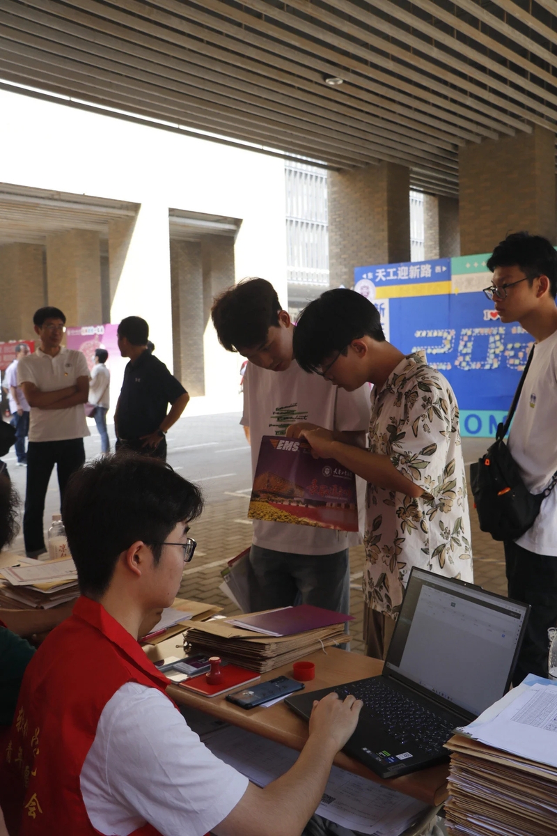 上午7时许,23级新生和家长陆续到达学院点位,在学院老师、新生班主任和学生志愿者的引导下,新生们在各自班级点位前顺序排队、登记确认、领取材料、办理手续,有序完成报到。