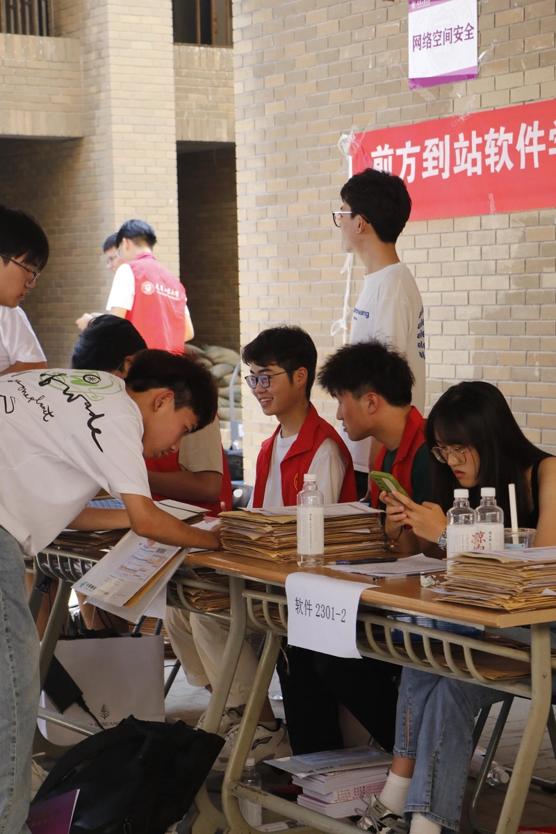 报到完成后,新生们随着志愿者的指引来到宿舍区,在那里,提前集结完毕的学生志愿者们早已等候多时,随时准备着为新生们提供帮助。新生的行李太多,他们会贴心地帮忙搬运行李到宿舍;新生初来乍到认不清路,他们会热情地指清方向,让新同学们感受到来自软件大家庭的温暖。