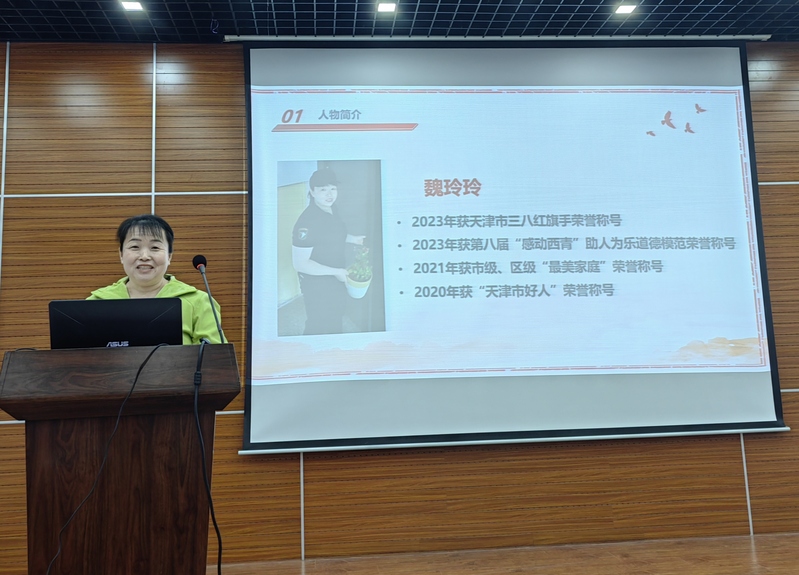 报告会上,天津市三八红旗手获得者、第八届“感动西青”助人为乐道德模范魏玲玲分享了自己多年来勇救3位落水者、累计献血14000毫升、工作之余帮助失独老人义务跑腿理发等一系列的感人故事。从自身角度讲述了自己对于雷锋精神中“助人为乐、干一行爱一行、锐意进取”等时代内涵的理解;最后,她与全体与会党员共勉,学习雷锋精神要心动更要行动,要学面子更要学里子,要从学一阵子变为学一辈子。报告会在“学习雷锋好榜样”的歌声中结束。
