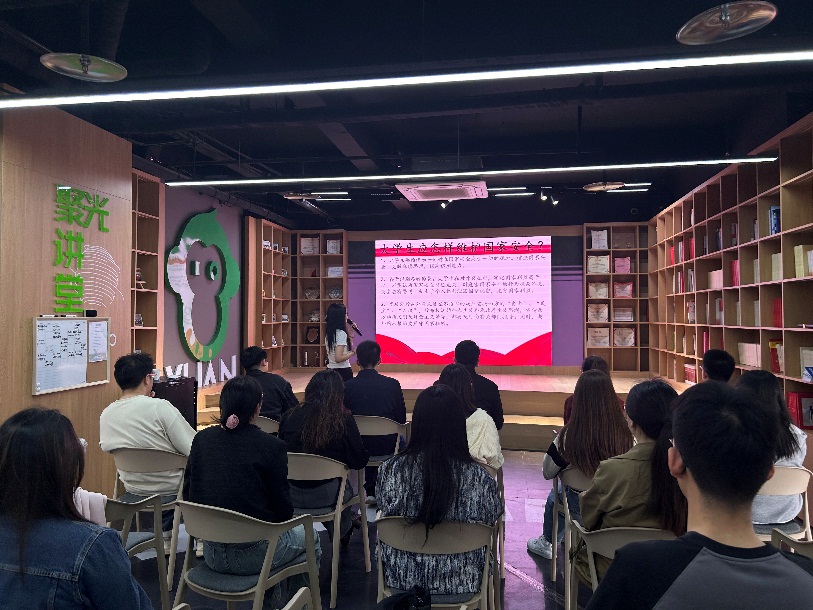 活动伊始,全体师生共同收看了全民国家安全教育日宣传片。随后,“法垒锋行”志愿服务团王天雨以“总体国家安全观,创新引领10周年”为题,从“什么是国家安全”、“全民国家安全教育的意义”、“国家安全法律体系”、“危害国家安全的行为”、“国家安全与大学生的关系”等五个方面展开,对国家安全的内涵、国家安全法律体系等进行了重点解读,同时结合典型案例阐释了公民增强维护国家安全意识的重要性。活动最后,师生们集体观看了国家安全警示教育纪录片《身边的“暗战”》,并参观了“一站式”学生社区党建长廊。