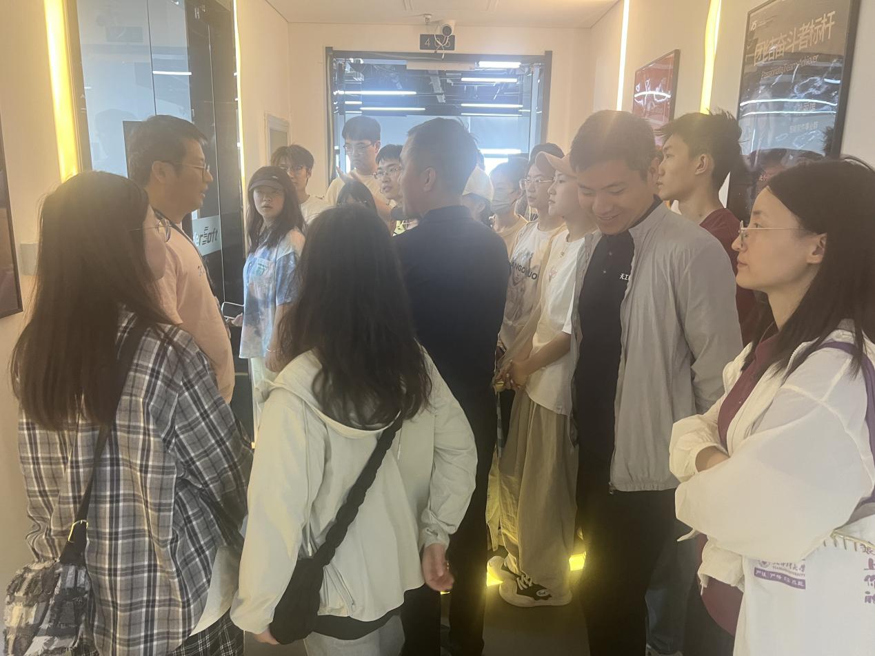 最后,师生们走入天津德通电气有限公司,副总工程师慕广斌、软件开发部副经理陈峥向大家介绍了公司的基本情况,天津德通电气有限公司2008年6月在天津市西青开发区成立,是国家级高新技术企业、国家级“专精特新”小巨人企业、天津市“专精特新”中小企业。经过十余年的发展,公司已经形成了以工业自动化集成为基础、以智能化软件开发为龙头的产品体系,业务范围包括:DTCC智选平台及网络建设、智能选煤生产管理系统DTiCMES软件开发等。师生们共同走进天津德通电气有限公司车间,通过现场实物演示和实际操作,将理论与实践相结合,现场为同学们答疑解惑,加深了同学们对工作岗位的认识。