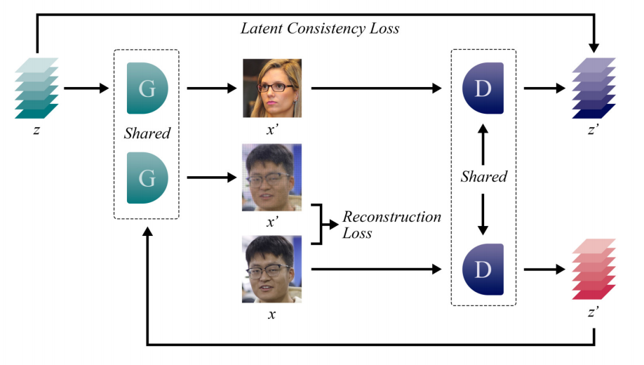 生成模型是计算机视觉领域的重要组成部分,广泛应用于图像生成、视频编辑、风格迁移乃至药物发现等多个领域。特别是生成对抗网络(GANs),因其生成逼真图像的卓越能力而受到广泛关注。然而,由于生成器和判别器之间的竞争不公平,所以生成对抗网络的训练存在不稳定的问题。针对这一问题,论文提出了一种新的GAN训练视角,即“一致的潜在表示与重构”(CLR-GAN),旨在让训练过程更公平,从而获得更稳定、高质量的图像生成结果。CLR-GAN的核心理念是将生成器和判别器视作逆过程。具体而言,判别器除了判断图像真伪之外,还需承担一项额外任务,即恢复一个预设的潜在代码;与此同时,生成器也要具备从真实输入中进行重构的能力。这样,在生成器的潜在空间和判别器的输出特征之间建立了联系,使得两者在训练时能被置于更平等的位置上。通过引入一致的潜在表示损失,量化并最小化生成器和判别器潜在空间之间的距离,进一步增强了训练的稳定性。实验结果显示,CLR-GAN在不同数据集(如CIFAR10和AFHQ-Cat)和多种架构上的应用,都能够显著提升图像质量,在FID分数上分别提高了31.22%和39.5%。此外,论文还展示了CLR-GAN得到的预训练的特征提取器在CIFAR-10分类任务上具有优秀的表现,表明所提方法不仅能改善图像生成,还能有机会作为有效的无监督训练策略,对于生成式模型在表征学习上的应用也有一定的启发作用。