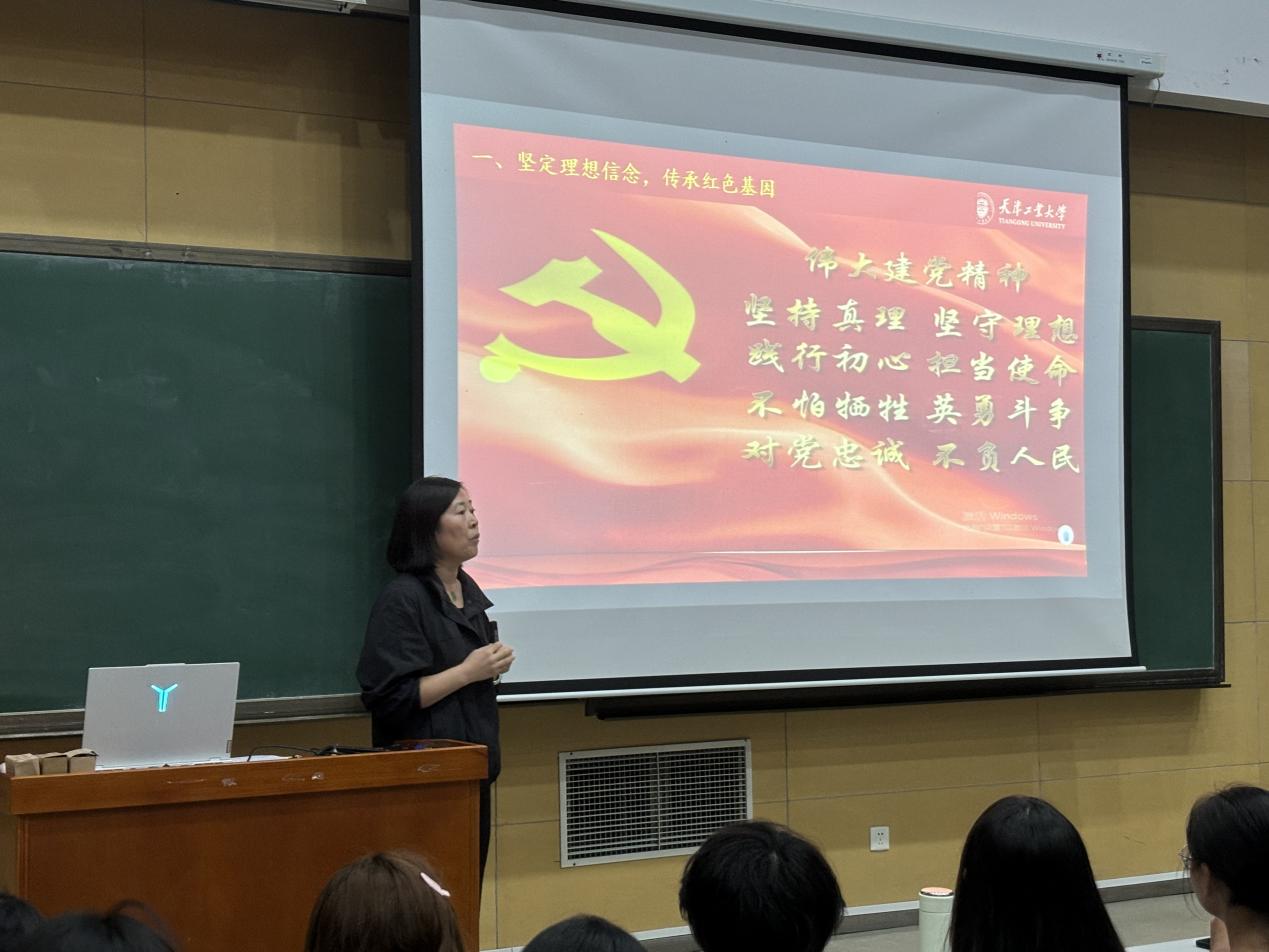郭翠娟书记以“铸魂培根育新人,笃行宏志谱华章”为主题,从“坚定理想信念,传承红色基因”、“全面建设社会主义强国”、“树立远大理想,争做新时代好青年”等三个方面开展专题讲授,她代表学院党委对2024级新生表示欢迎。并提出了几点要求和希望:一是努力做到学以明志,用理想引领未来,在学习过程中自觉树立正确的理想信念,把握人生奋斗方。二是做到学以修身,用品德点亮未来,不断提高思想政治素养,明大德,守公德,严私德,在学习中完善自我、成就自我。三是做到学以致用,用实践书写未来,培养创新思维,练就真才实干,主动响应时代号召,将个人的成长成才融入到国家发展之中,努力成长为堪当民族复兴重任的时代新人。最后,她嘱咐大家,希望同学们在政治思想上追求进步,积极向党组织靠拢,奏好追求政治进步的“人生三部曲”。
