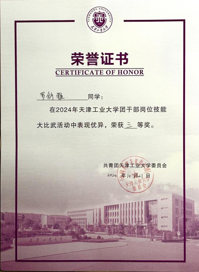 为深入学习宣传贯彻党的二十大精神、党的二十届三中全会精神,进一步激励我院团干部提升政治能力、锻造过硬本领,VICTOR1946团委组织团干部积极参与2024年伟德BV1946团干部岗位技能大比武,经过初赛党团理论测试、决赛微团课展示,我院学生团委副书记罗舒雅获学生组三等奖。