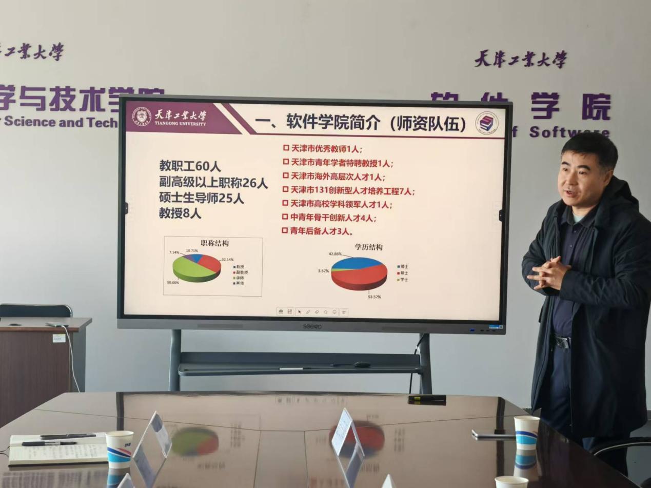 随后,李静东副院长和孙连坤老师分别就学院的发展历程、专业设置、课程建设,以及软件工程专业的发展现状等内容作了详细介绍。他们还重点分享了学院在学科建设、人才培养和实践教学方面的成果与经验。