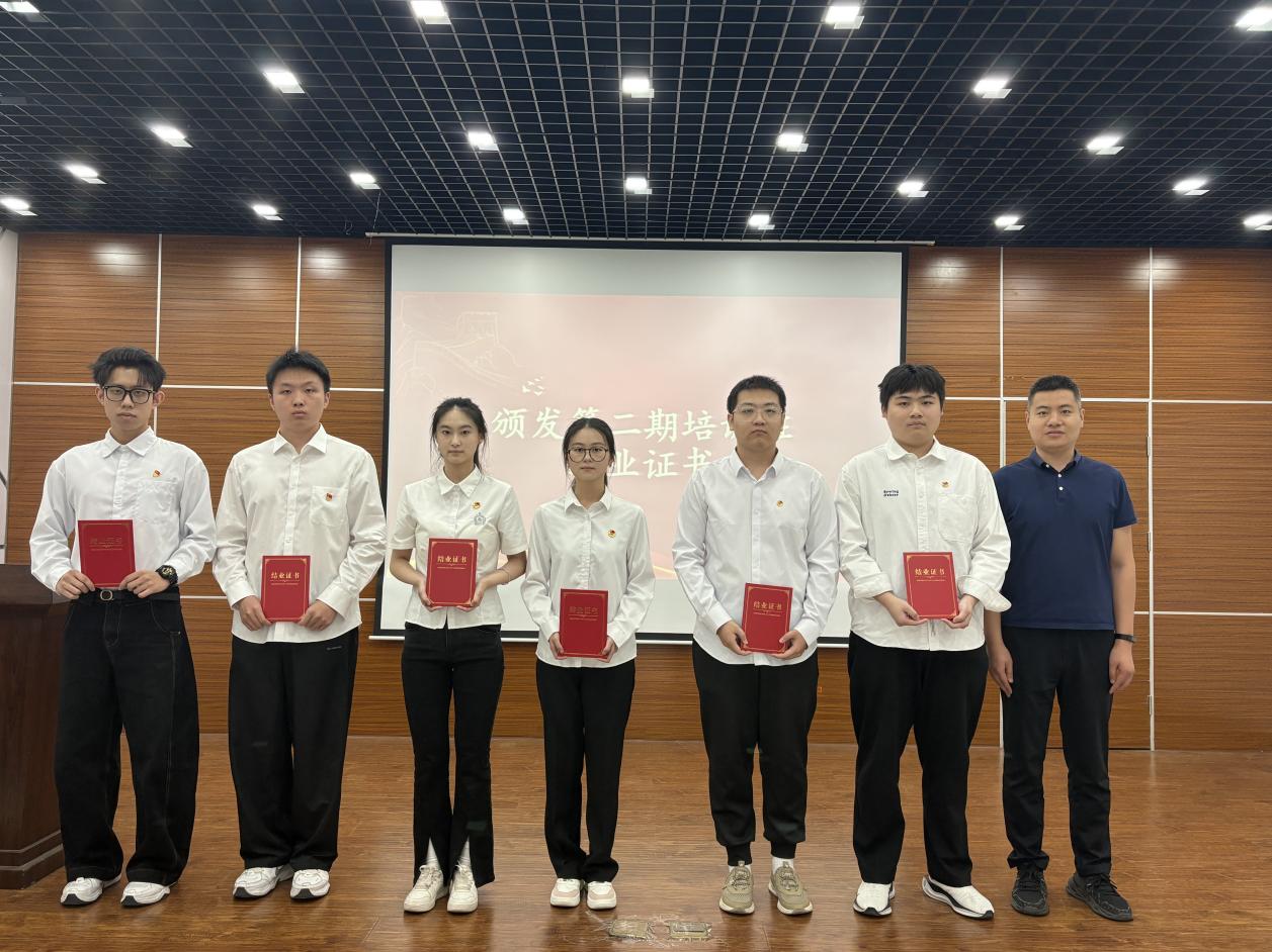 院青马第二期培训班开班一年以来,紧扣立德树人根本任务,精心设计培养体系,丰富实践形式,为同学们搭建起成长成才的广阔平台。经过一年的学习实践,共有16名学员顺利结业,学院党委副书记唐贺和学生工作办公室宋开贺老师依次为第二期学员颁发结业证书。