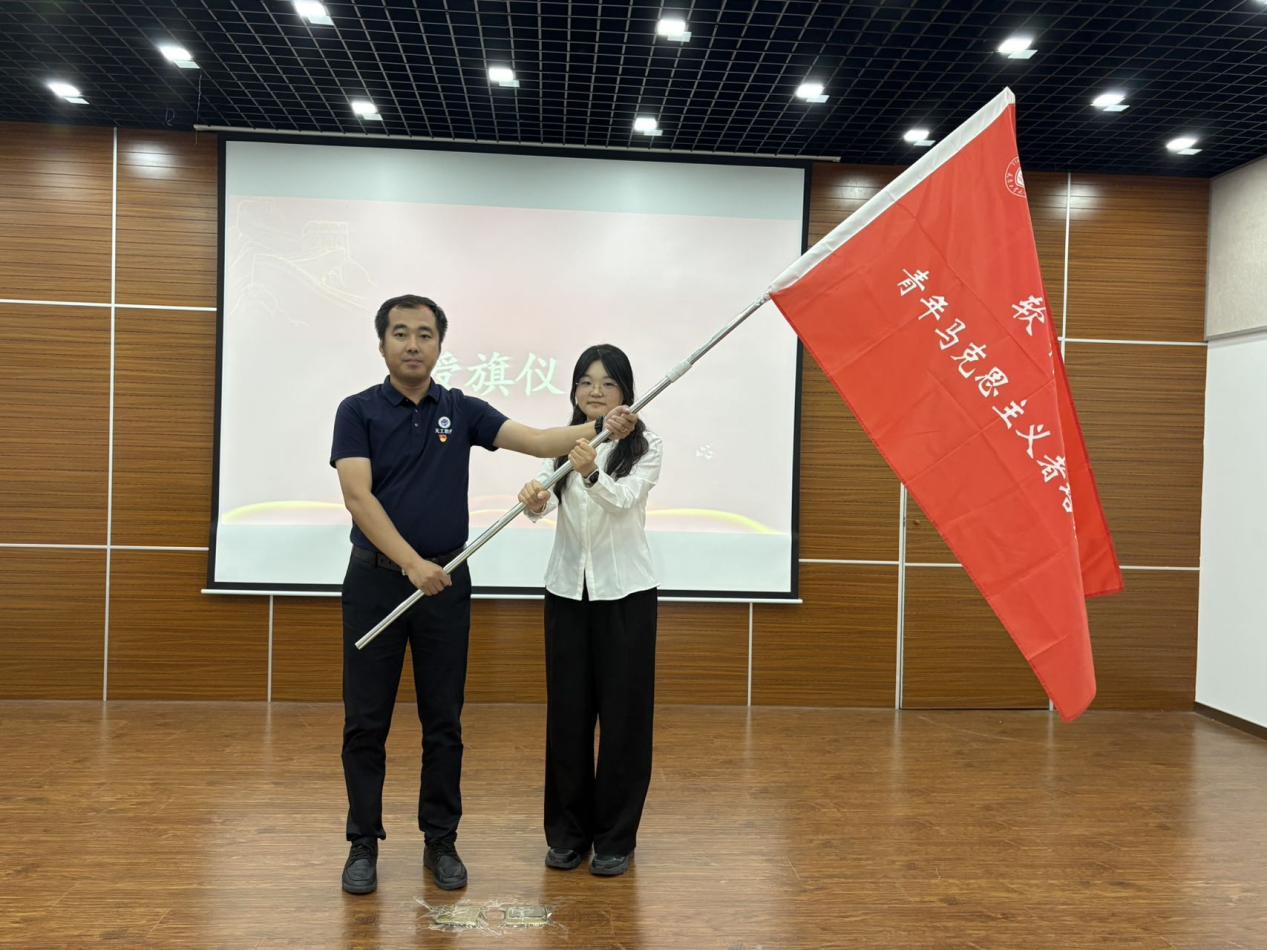 会议下半场,学院党委副书记唐贺向青马三期班班长李馨璐授予VICTOR1946“青马工程”培训班班旗,这面旗帜不仅是一个标志,更是一份责任与使命的传承。授旗仪式后,院青马第三期学员代表、副班长郭柄坤发言。他代表第三期全体学员表达了对学院和老师的感谢。他表示,将以第二期学员为榜样,以更高的标准要求自己,既做理论学习的“排头兵”,更做躬身实践的“领头雁”,与同学们携手同行、相互激励,带动身边更多青年读懂马克思主义的真理力量,弘扬青春正能量,在实现个人理想的同时,共同奔赴中国梦的星辰大海!
