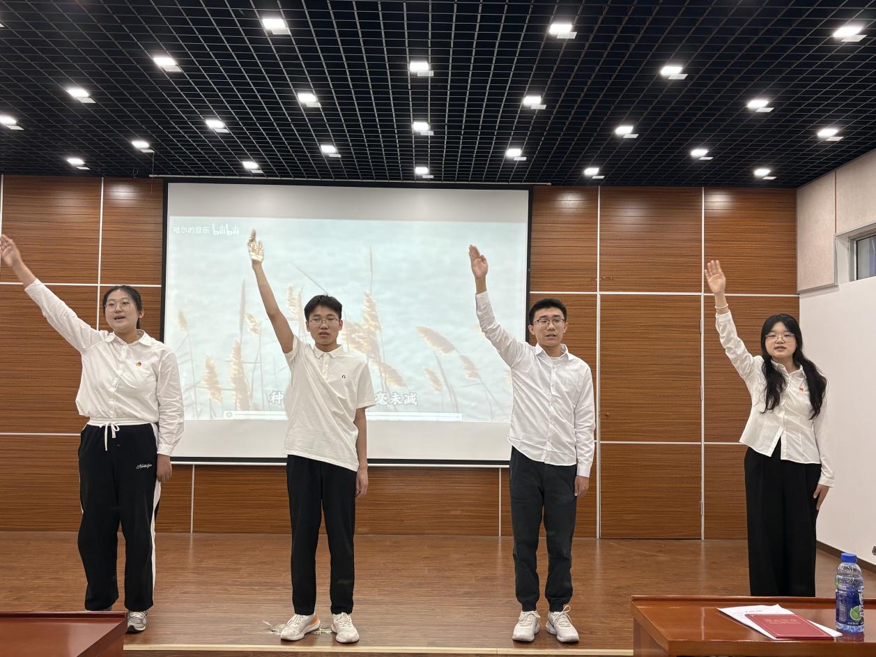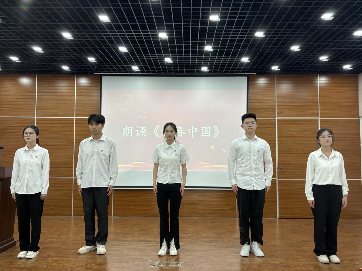 仪式接近尾声时,精彩的朗诵《青春中国》为大家带来了一场视听盛宴。学员们用激昂的声音、真挚的情感,描绘了中国的青春画卷,表达了新时代青年对祖国深深的热爱。最后,仪式在激昂的团歌声中圆满结束。