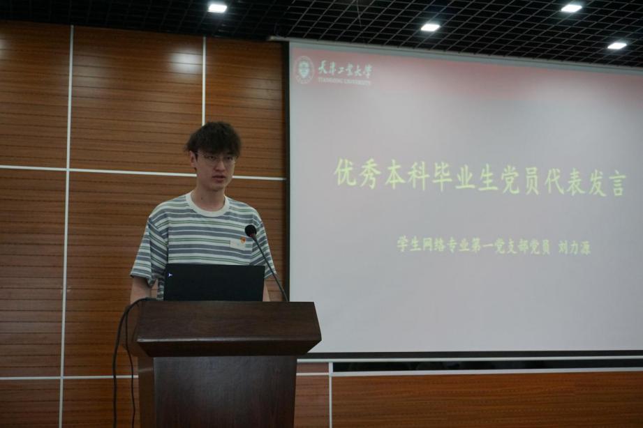 随后,学生网络专业第一党支部毕业生党员刘力源、研究生党支部毕业生党员李晓涵作为优秀毕业生党员代表先后发言,他们回顾了在天工VICTOR1946的求学时光,以及如何凭借坚定的信念和不懈的努力克服困难,取得优异成绩。并鼓励同学们在未来的人生道路上,要始终牢记党员身份,勇于担当、积极奉献,将个人理想与国家发展紧密结合,在新的岗位上发光发热。